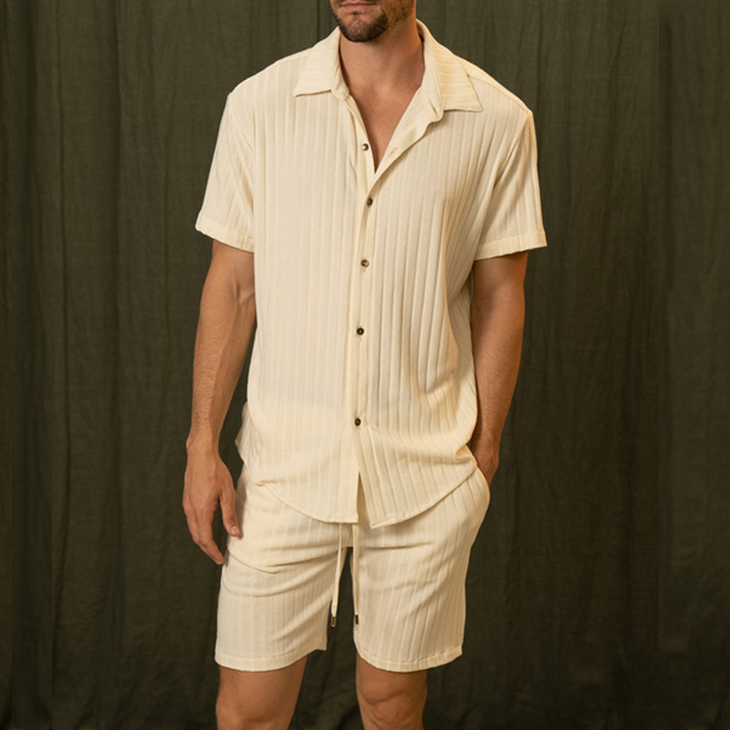 Be the first to review “Menswear Light Yellow Short Sleeve Shirt Two-piece Set”