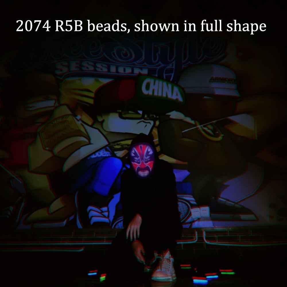 Full-color display mask: The upgraded and interesting LED Bluetooth mask has full color, which is cooler than another monochrome. There are four display modes: text editing, DIY graffiti design, pattern animation, music rhythm. You can connect the flashing LED mask to your phone through the Bluetooth APP, and then stand out at any party or festival.